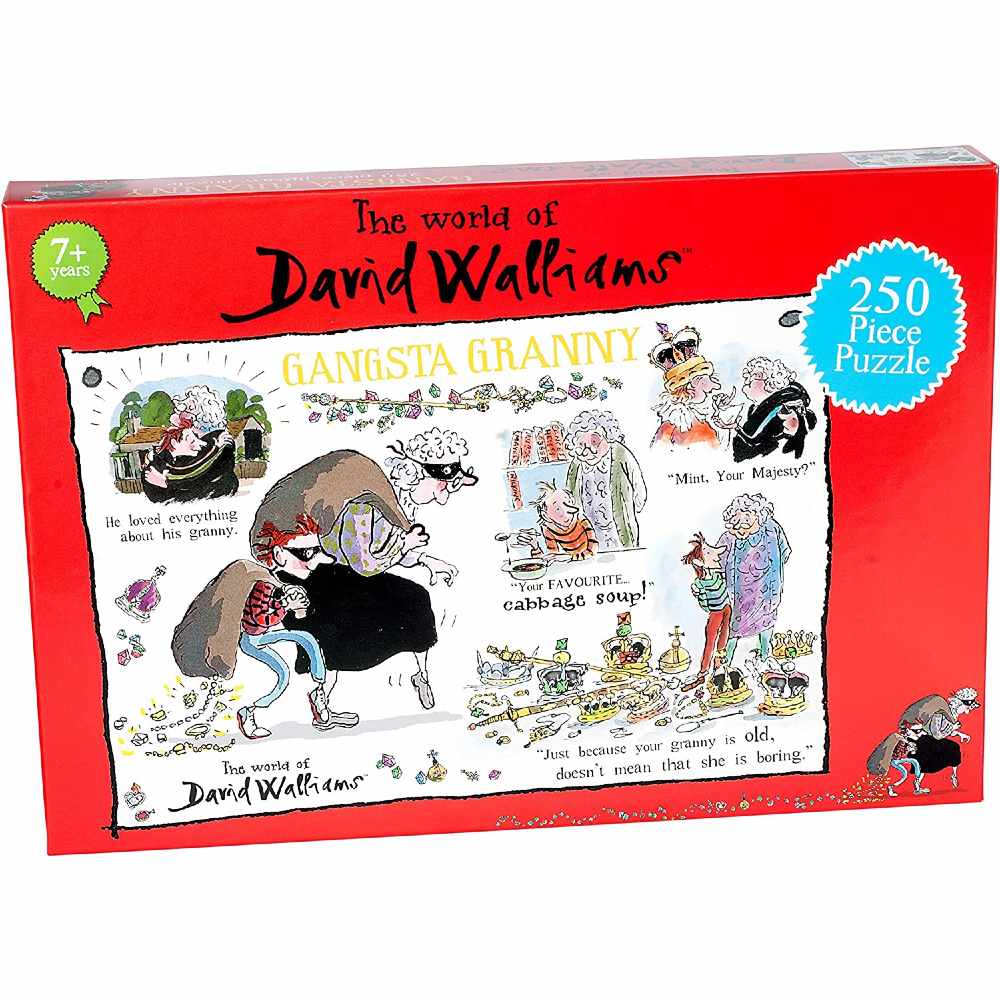 Introducing the ultimate fun puzzle, designed especially for fans of David Williams' popular children's novels. This Gangsta Granny 250 piece jigsaw brings to life the iconic illustrations from the award-winning illustrator, Tony Ross. As you piece together this fantastic puzzle, watch as funny anecdotes from the beloved book come to life - ‘Just because your Granny is old doesn’t mean that she is boring’ and ‘your favourite cabbage soup!’ Whether you're looking for a present for a 7 year old or are simply looking for a special challenge, this brain-teasing jigsaw is perfect. Plus, there are four puzzles in the series including fan-favourites The Boy in the Dress, Mr Stink and Billionaire Boy. Challenge yourself with an entertaining twist on an age-old classic today and join Granny on her adventure by picking up a Gangsta Granny Puzzle!